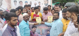 राष्ट्रवादी युवक काँग्रेसचे जिल्हा सरचिटणीस प्रा.दिनेश पाटेकर हे युवक प्रदेशाध्यक्ष महेबुब शेख यांचा सत्कार करुन संविधानाची प्रत देताना. |