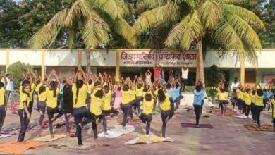 आंतरराष्ट्रीय योग दिन जिल्हा परिषद प्राथमिक शाळा व न्यू इंग्लिश स्कूल शाळेत साजरा